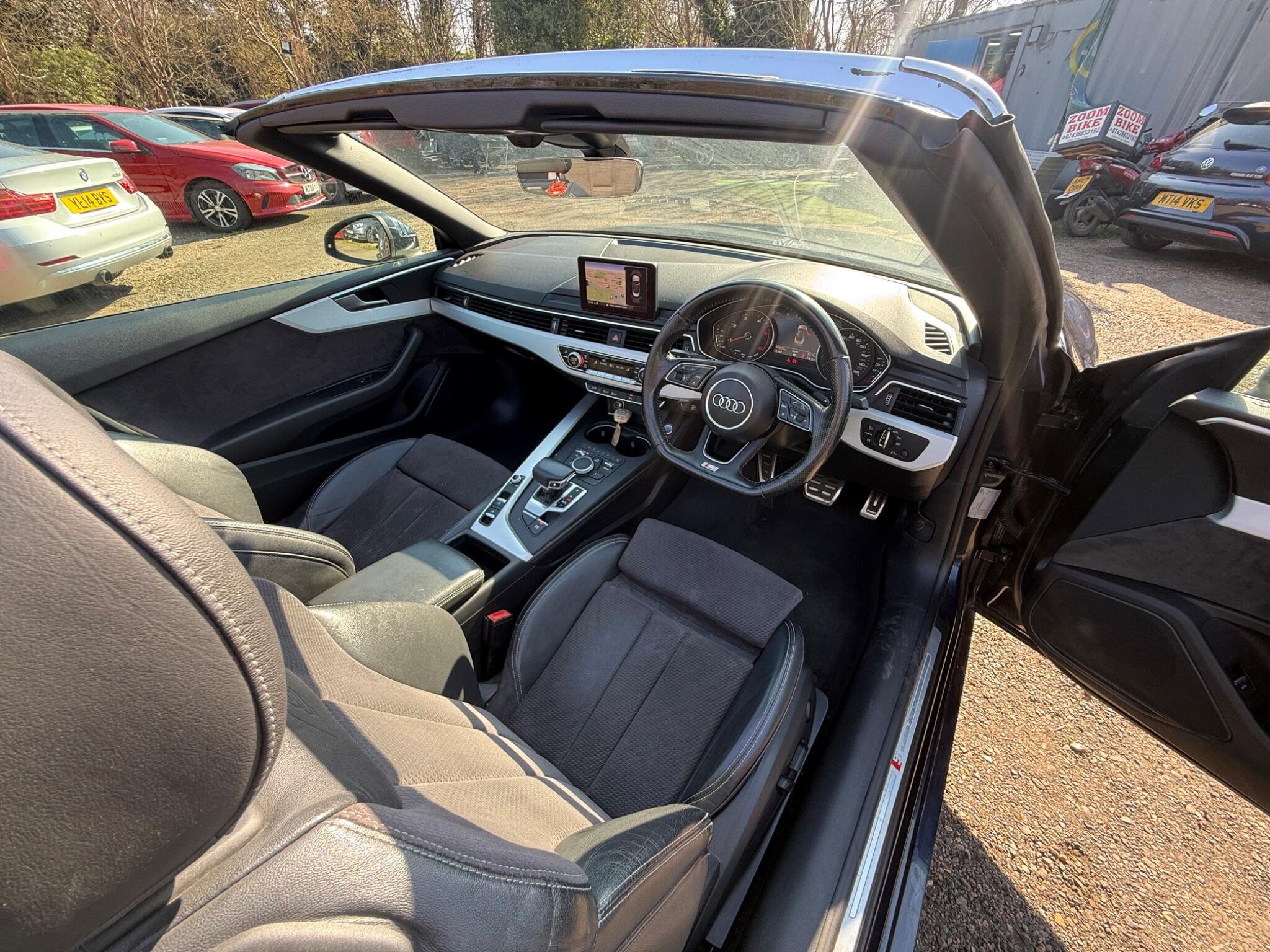 With only one previous owner, this 2017 Audi A5 Cabriolet TDI S line is a superb choice. The S line trim complements the vehicle's sleek design, while the 2.0L diesel engine meets Euro 6 emission standards. Enjoy the ease of use of the advanced key with the electric hands-free boot opening system, including keyless entry. The Audi phone box with wireless charging keeps you connected on the go. Manoeuvring is made simple with the parking assistance pack, incorporating a 360-degree camera and front and rear sensors. The comfort and sound package, which includes keyless entry, adds an extra layer of convenience. A rear-view camera is also included. For peace of mind, the vehicle comes with a 6-month warranty, a clear vehicle history check, and a 12-month MOT provided on purchase. The partial service history provides additional reassurance.