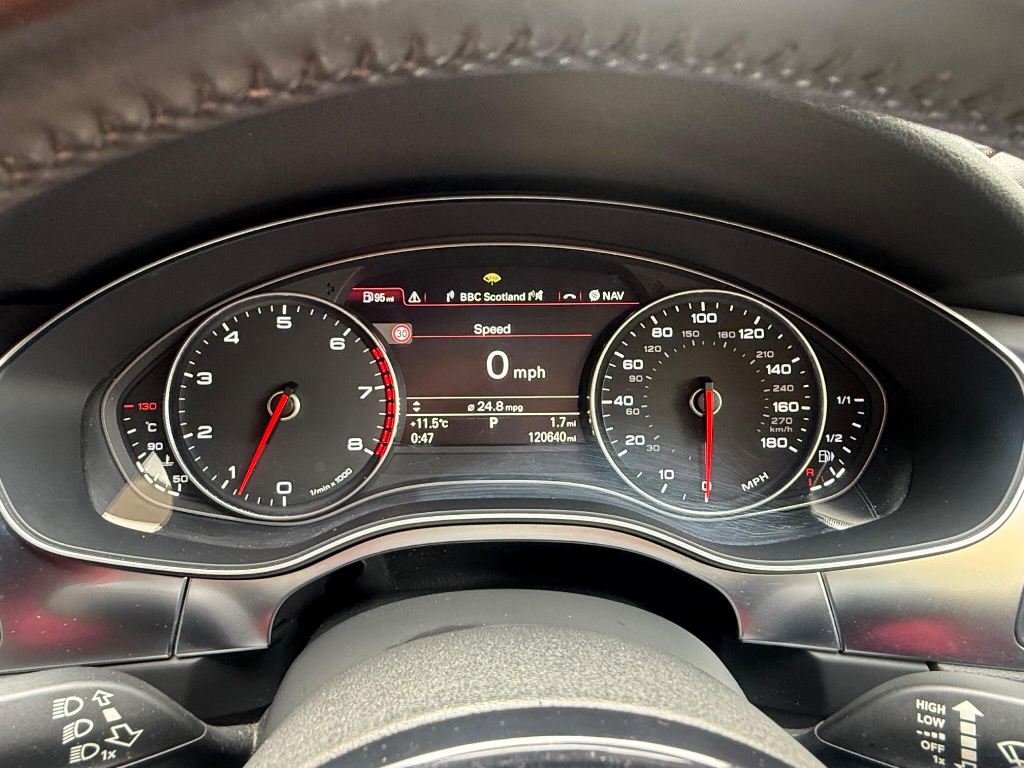 This Audi A7 TFSI V6 S line from 2012 boasts a clear vehicle history, offering you peace of mind. This striking four wheel drive model features a powerful 3.0 litre petrol engine and comes in the desirable S line trim. Inside, you'll find a host of advanced features designed for comfort and convenience, including Audi's adaptive Cruise Control with stop & go functionality, side and lane assist with front and rear pre sense, and automatic climate control. The car is also equipped with Xenon headlights for superior visibility and Bluetooth telephone preparation for seamless connectivity. Completing the premium look are 20 inch five segment spoke alloy wheels.