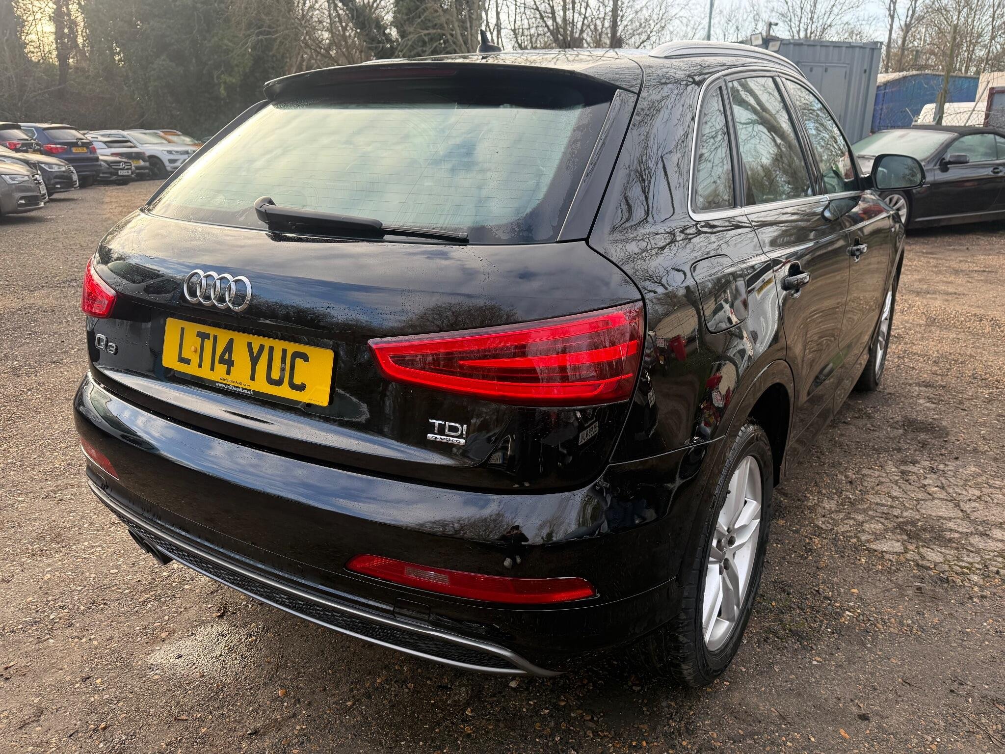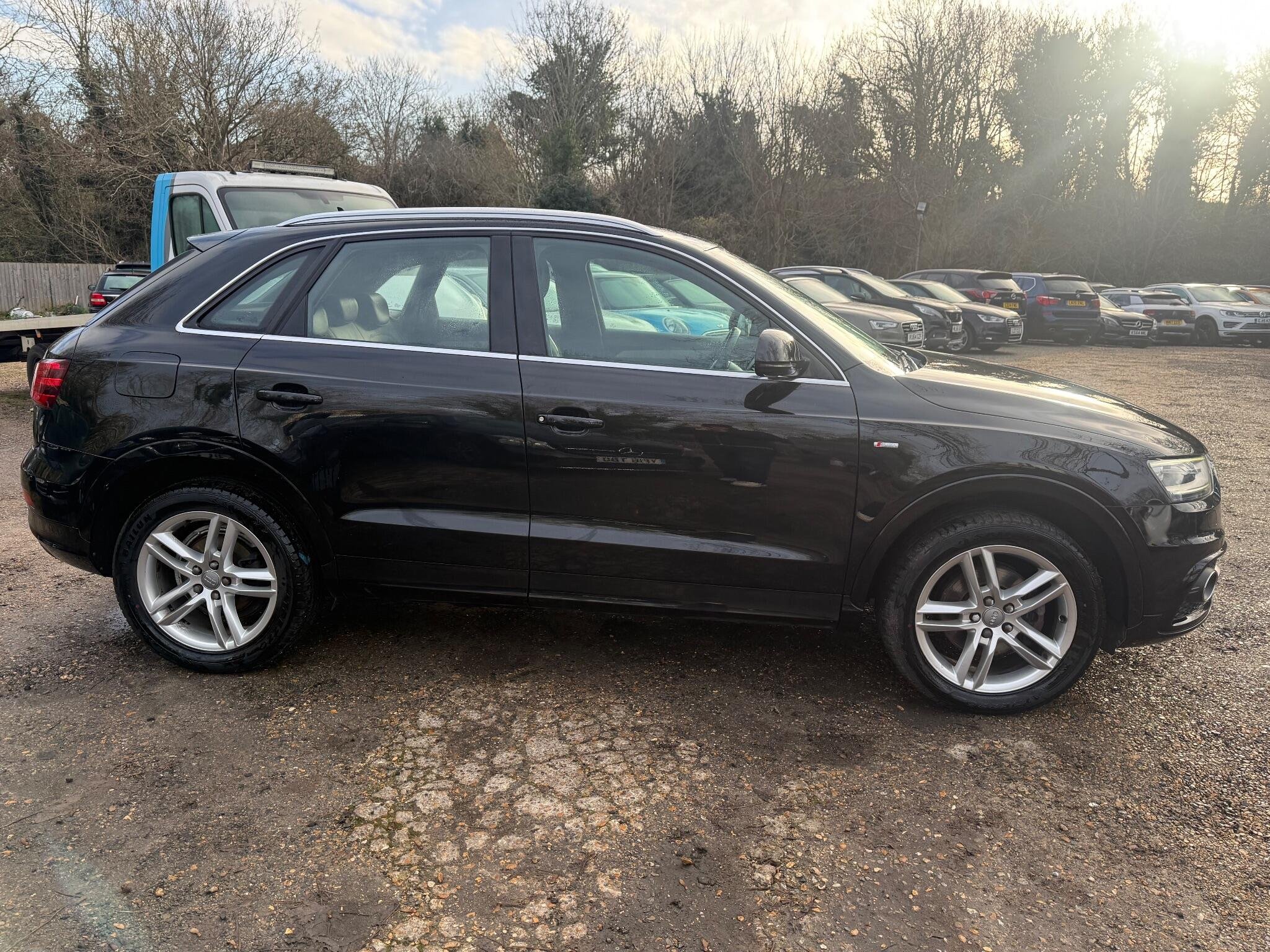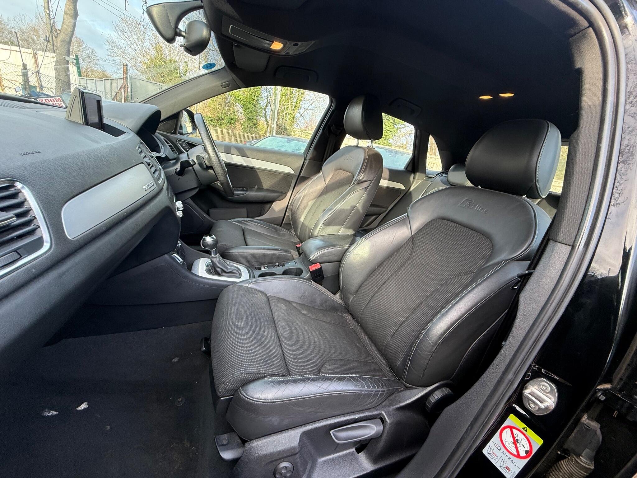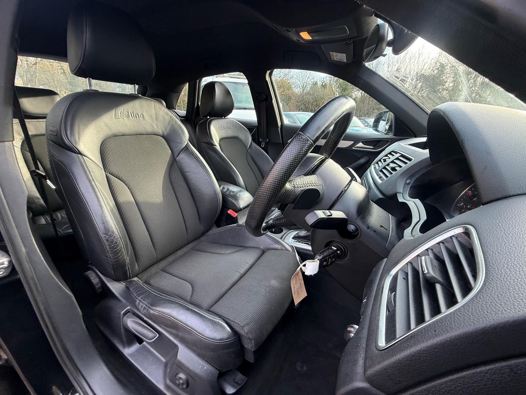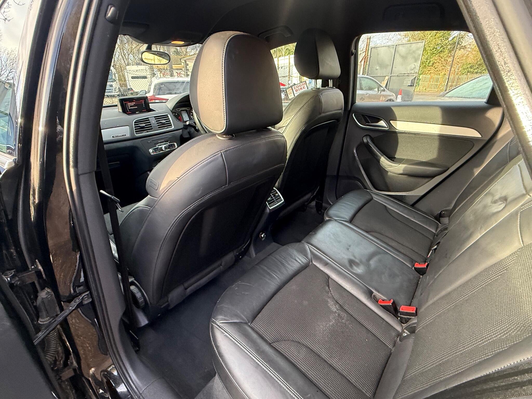 NEW TIMING BELT AND WATER PUMP This Audi Q3 TDI S line from 2014 offers excellent provenance with only two previous owners and a clear vehicle history check. It features a powerful 2.0 litre diesel engine paired with four wheel drive for confident handling in all conditions. The S line trim enhances its sporty appeal, and you can enjoy the comfort of heated front seats and the luxury of Black Fine Nappa Leather upholstery. For convenience, it includes Mobile Telephone Preparation with Bluetooth and Advanced Key for keyless entry. Parking is made easier with the Audi Parking System Plus and Park Assist, including front parking sensors.